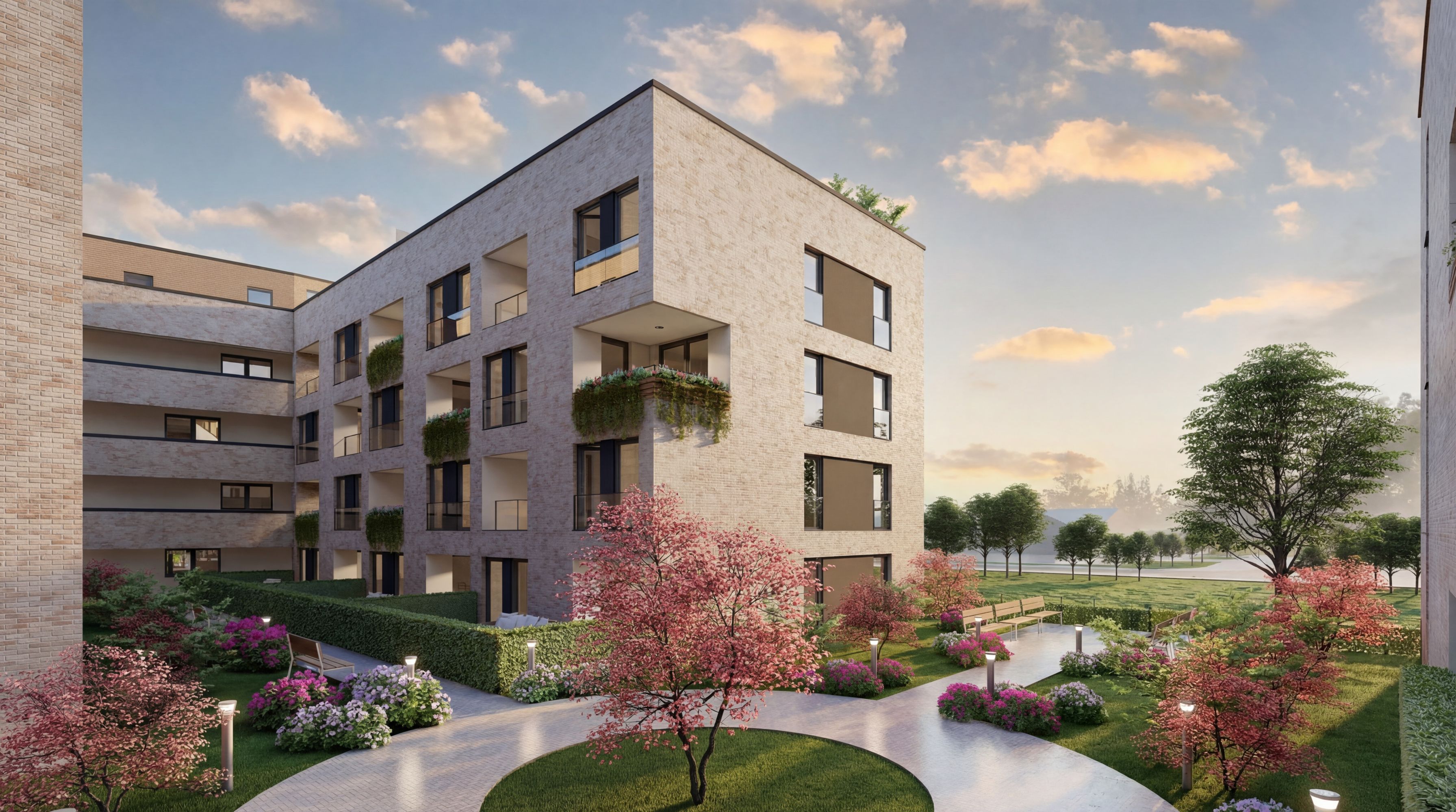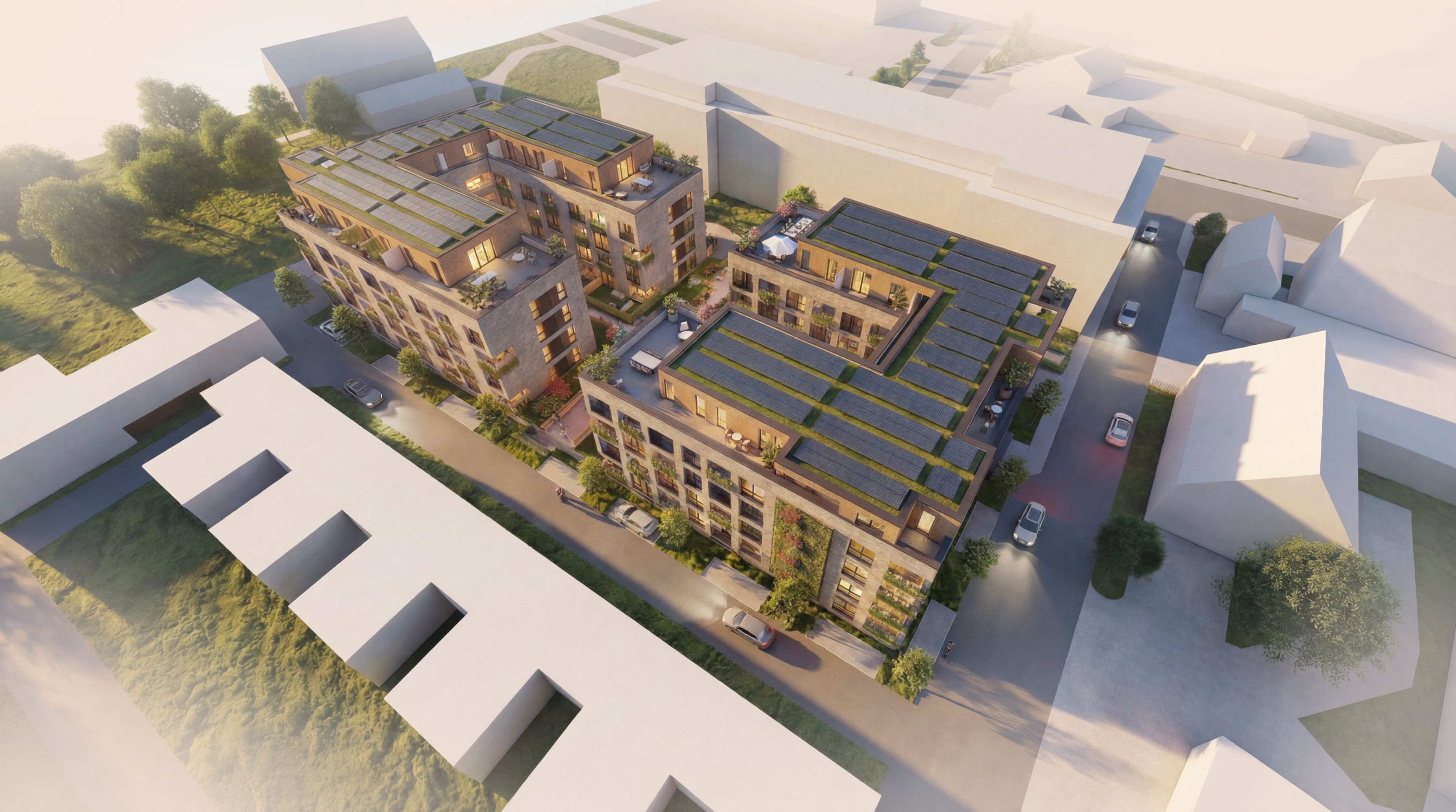 Nur wenige Gehminuten vom Marktplatz entfernt entsteht in Melle-Mitte das neue Wohnquartier ELSE-HÖFE. Zwei harmonisch angeordnete Baukörper mit heller Klinker- und Putzfassade, bodentiefen Fenstern und einem begrünten Innenhof schaffen ein modernes und einladendes Wohnumfeld.