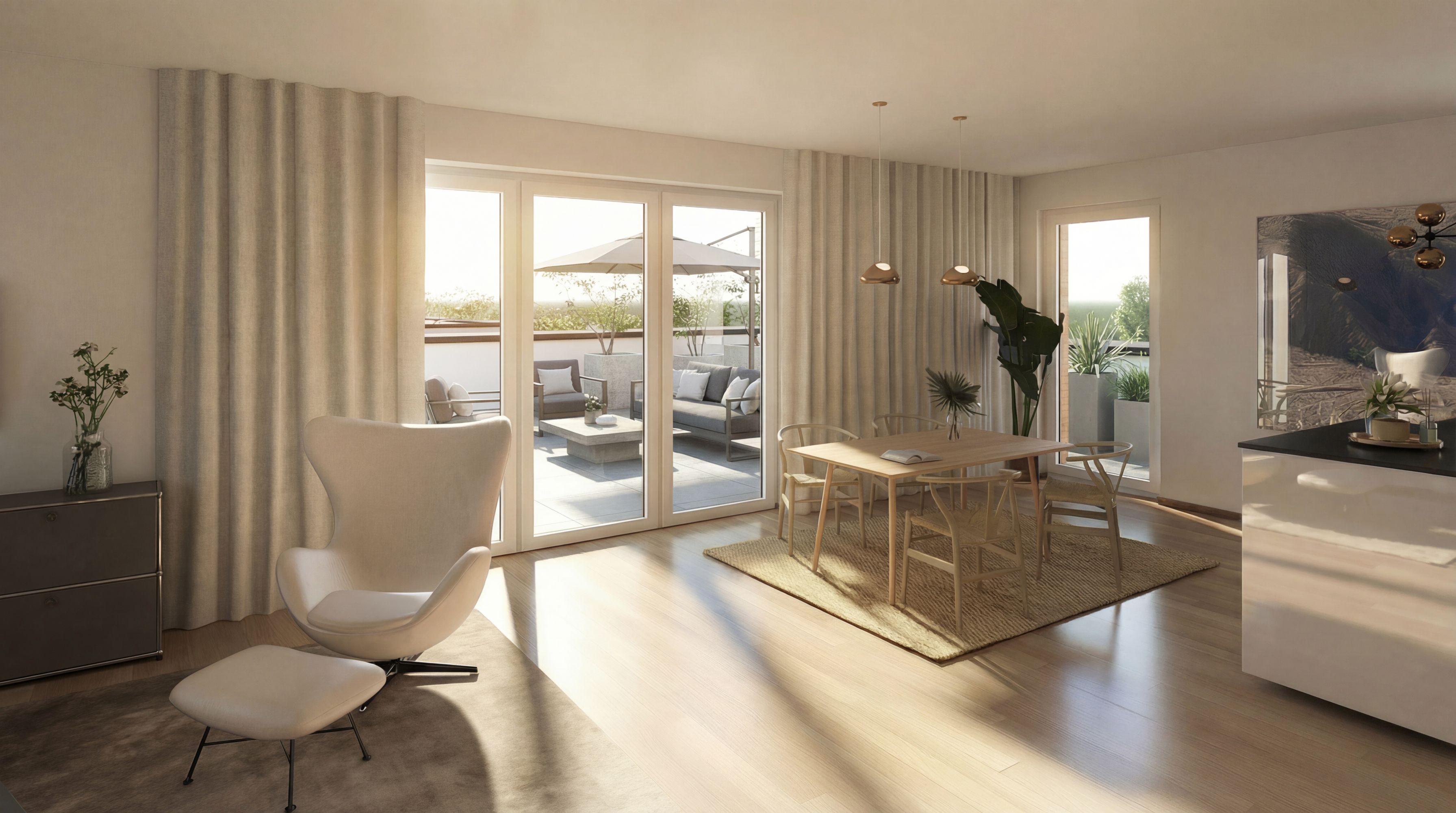 Die 2- bis 5-Zimmer-Wohnungen überzeugen durch offene, durchdachte Grundrisse und lichtdurchflutete Wohnräume. Großzügige Loggien, Terrassen mit teilweise eigenem Gartenanteil im Erdgeschoss sowie attraktive Dachterrassen im Staffelgeschoss bieten zusätzlichen Wohnkomfort. Alle Wohnungen sind barrierefrei und bequem mit dem Lift erreichbar.